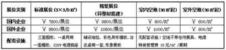 参展费用 (注:双向开口展位加收1000元人民币的角位费)