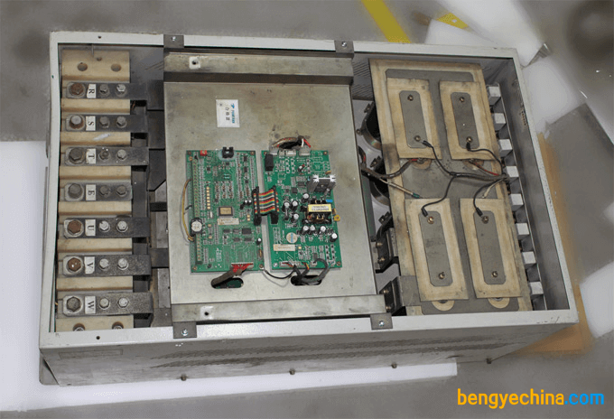 这台变频器是2001年5月,普传科技深圳分公司生产的一台110KW风机水泵型的变频器,用于广西一造炉厂——锅炉离心引风机调速,用到现在将近10年了,近期客户反映出现了电流检测不准,返回后我售后服务部工程师立即对它进行了全面的检修,发现因为时间久远,除了电源版的元器件老化和霍尔线氧化了之外,其他器件一切正常,整机构架良好,经过售后工程师的悉心处理,结果一台性能良好、技术指标正常的风机水泵型变频器又可以正常运行工作了。