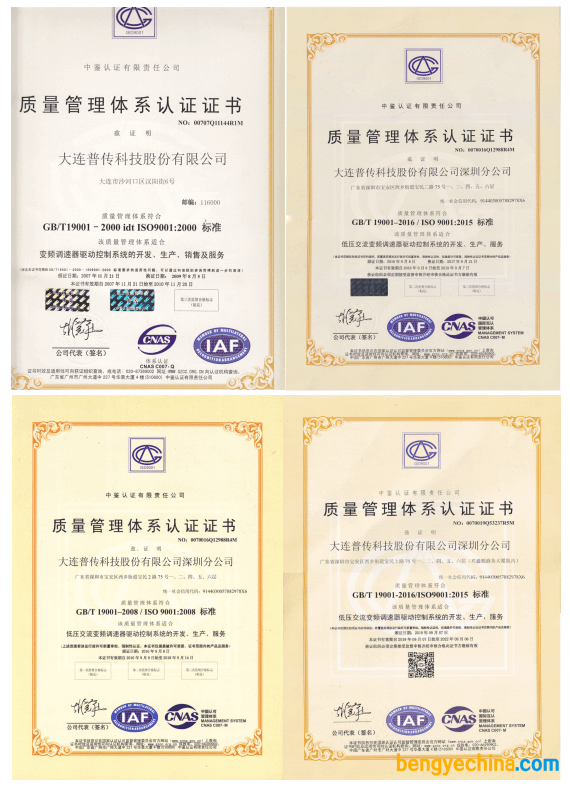 自2014年以来,我司产品已经连续五年获得TÜV权威机构认证证书,表明我司无论从产品研发能力、生产能力、进出口贸易能力、质量管理体系和产品认证等各方面都达到了国际认证标准,公司愿景朝着“世界电气驱动和控制领域的知名品牌”的战略目标迈出了坚实而重要的又一步。