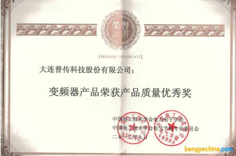 中国电器工业协会变频器分会2013年会员大会,于10月11日~13日在美丽的成都望江宾馆举行,前期组委会经过组织行业知名企业的技术专家评审,上报协会进行复审和终审,评选的2012-2013度"优秀会员单位"及"质量可信产品",普传科技荣获"优秀会员单位"奖,普传科技的PI9000系列变频器产品荣获"质量可信产品"。2017年11月23日在中国电器工业协会变频器分会会员大会上,普传科技PI9000系列变频器产品再次荣获“质量可信产品”。