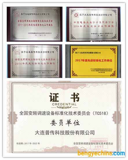2013年12月,由全国变频调速设备标准化技术委员会主办,浙江省机电设计研究院协办的2013年年会暨标准审查会在杭州举行,上午特邀中国电器工业协会标准化与技术评价中心副主任曾雁鸿做“近期国家标准化重点工作及有关精神”的报告;随后标委会做了2013年变频标委会工作报告及2014年工作计划,并对2011-2013年度全国变频调速设备标准化技术委员会先进标准化工作单位进行了表彰,大连普传科技股份有限公司获得了殊荣。