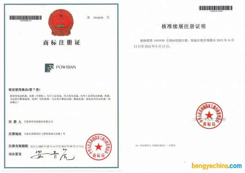 2002年9月14日,大连普传科技股份有限公司申请注册的“齿轮”图形+英文POWTRAN商标获得中华人民共和国国家工商行政管理总局商标局核准注册成功。