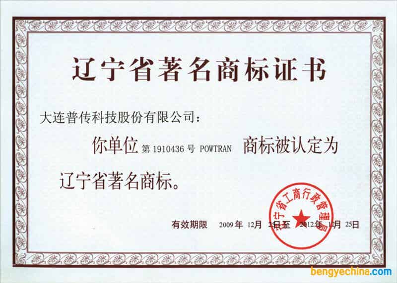 2009年,辽宁省工商行政管理局下发《关于印发2009年辽宁省著名商标名单的通知》(辽工商【2009】108号),经辽宁省著名商标评审委员会论证,普传科技的POWTRAN商标被认定为辽宁省著名商标。这是在2010年新年伊始,普传科技继国家级“高新技术企业”认定后的一个重大好消息。