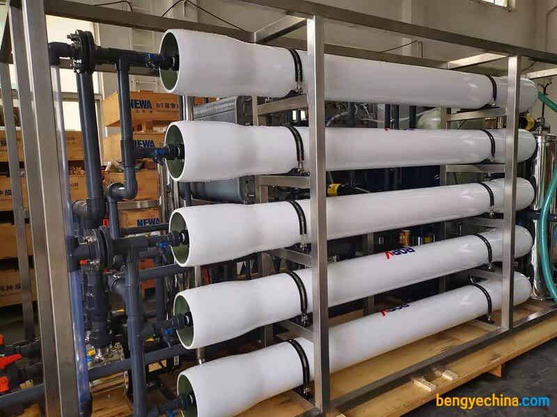 渗透简称RO,是六十年代发展起来的一种膜分离技术,其原理是原水在高压力的作用下通过反渗透膜,水中的溶剂由高浓度向低浓度扩散从而达到分离、提纯、浓缩的目的,由于它与自然界的渗透方向相反,因而称它为反渗透。反渗透可以去除水中的细菌、病毒、胶体、有机物和98%以上的溶解性盐类。该方法具有运行成本低,操作简单,自动化程度高,出水水质稳定等特点。与其他传统的水处理方法相比具有明显的优胜,广泛运用于水处理相关行业。