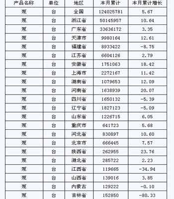 2014年中国泵产量分析 2015-04-27 0 核心提示:中国泵业网 2014年中国泵产量分析 :2014年1-12月生产泵1.24 亿台,同比增长5.67 %。 工业泵网2014年中国泵产量分析 :2014年1-12月生产泵1.24 亿台,同比增长5.67 %。 点赞 0举报收藏 0打赏 0评论 0分享 36 更多>同类泵业资讯 • 贞丰县工业园热电联产动力车间项目水处理系统计 • 2017年水泵零配件进出口贸易总额统计 • 永嘉县泵阀制造业工价样本企业成国家统计局重要 • 统计局:10月份原煤、原油和天然气产量同比下降 • 中通协泵行业重点骨干企业2016年1至2季度主要指 • 国家统计局:8月份煤炭进口明显增长 • 2016年1至2季度重点骨干企业利税总额排序表 • 2016年1至2季度重点骨干企业利税总额完成情况表 • 2016年1至2季度重点骨干企业利润总额排序表 • 2016年1至2季度重点骨干企业利润总额完成情况表