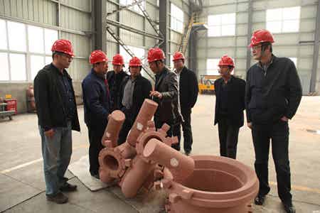 考察组一行观看了公司企业宣传片,参观了公司的机加、装配及铸造消失模工序现场。肯定了公司作为行业排头兵所具有的影响力,对公司在技术、生产、管理等方面的实力表示认可。随后,双方负责人分别就企业的生产经营情况以及未来的发展规划做了详细介绍,双方都表示今后要加强沟通交流,积极寻求合作共同点,在未来优势互补,实现双方的互利共赢。