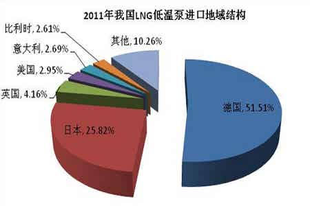 近年来我国从德国、日本等发达国家大量进口LNG低温泵产品,2011年从德国进口的低温泵产品数量达到21738台,占进口数量的一半以上。