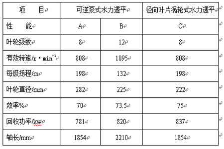 径向叶片涡轮与可逆泵式水力透平性能对比表