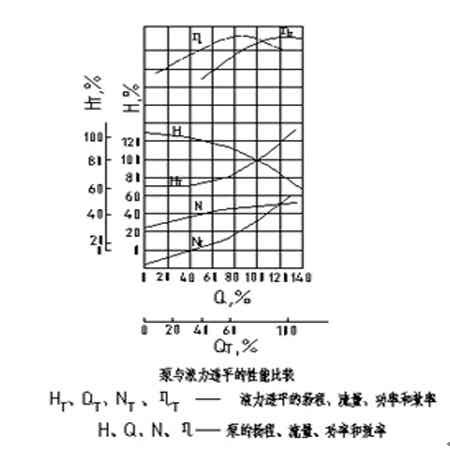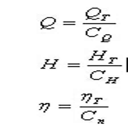 作水力透平用和作泵用的最佳效率点的压头和流量都有一定的对应关系,视泵的比转速NS不同,其转换系数也不同,即: