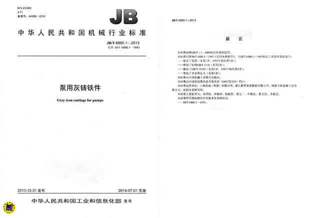 JB/T 6880.1—2013《泵用灰铸铁件》代替JB/T 6880.1—1993《泵用灰铸铁件》,制定该项标准是适应市场发展的需要,对泵行业的发展具有非常重要的指导意义。连成作为主要起草单位参与这次标准制定,不仅提升了品牌的知名度,同时也体现了连成在行业内的权威性和领导地位。