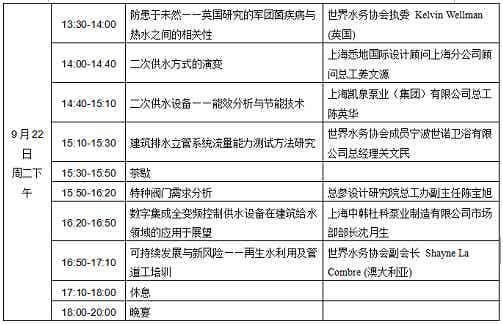 时间:2015年9月21日报道,22-23日开会;23日下午-24日参观上海国际城镇及建筑给排水水处理展览会