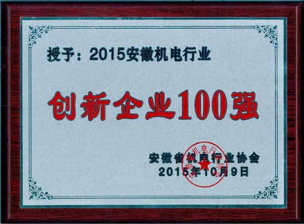 2015年10月9日由安徽省机电行业协会、《江淮机电》杂志社、中国机电产品交易网等单位主办的“2015年机电行业创新企业100强评选活动颁奖典礼”在安徽国际会展中心盛大开幕,三联泵业集团荣获“创新企业100强”荣誉称号。