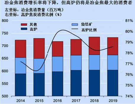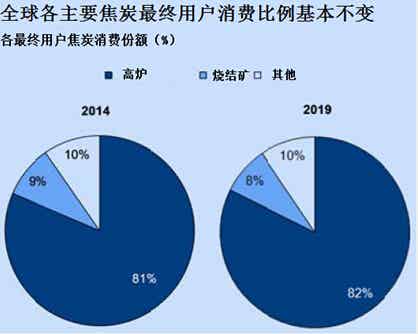 2015年第二季度,全球焦炭消费量同比降幅最大,达1.6%。2015年下半年,由于中国、独联体和欧洲的需求贡献,焦炭消费量将有所回升。尽管增长缓慢,2019年以前,中国焦炭消费量仍将保持增长态势。2019年,预计焦炭消费量将下降1.5%。去年高炉是冶金焦最大的消费用户,消费量缓慢增长至消费总量的82%,这一趋势将持续到预测期末。