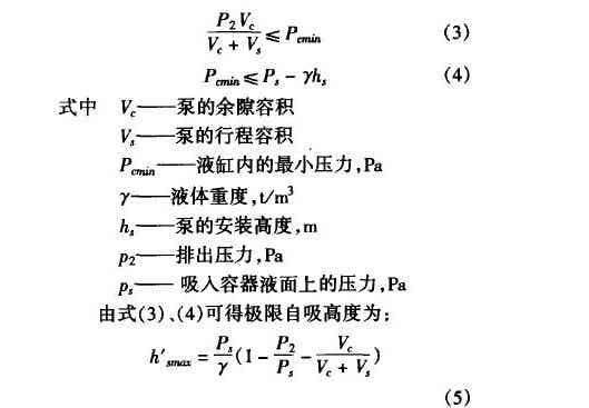 (1)当吸入行程结束时(柱塞后死点),应使工作腔内空气压力小于泵进口侧静吸入压头,使进口管空气被不断地吸人工作腔;