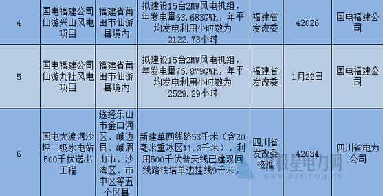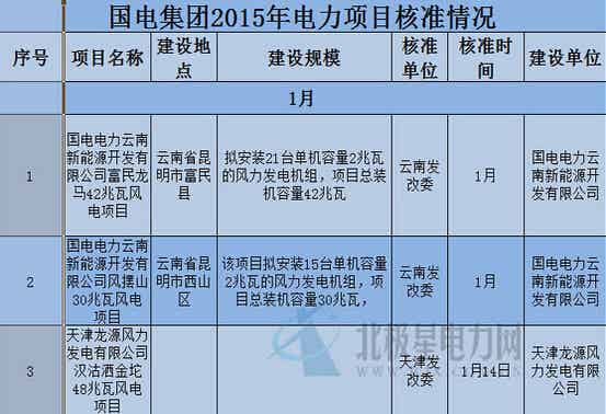 国电1-10月获核准的37个电力项目情况