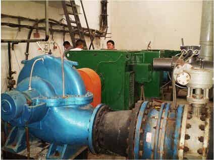 马头岗污水厂中水回用泵站是荥阳国电电厂的主供水泵站,因原用双吸泵故障率较高,不能满足正常使用。该泵站于2013年6月17日,安装我威沪泵业生产的OS新型单级双吸中开泵作为主供水泵,该批泵单泵流量1250m3/h,扬程125m,配套功率710KW,电压10KV。自试机运转以来,水泵运行平稳,各方面性能参数满足泵站使用,截止到昨日为止,已良好连续运行两年整的时间。