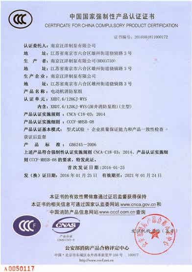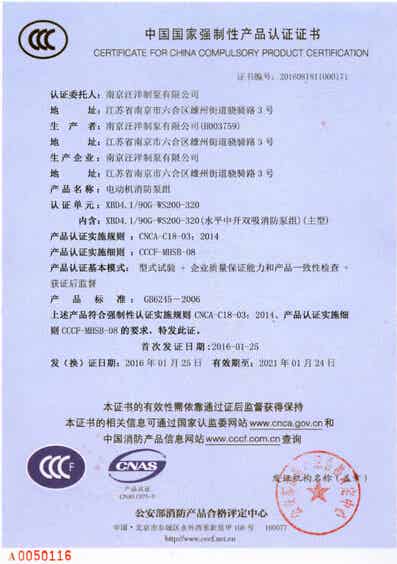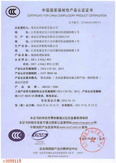 热烈庆祝汪洋制泵荣获”3C”认证证书 2016-03-14 0 核心提示:热烈庆祝汪洋制泵荣获”3C”认证证书 2016年1月25日汪洋制泵生产的深井消防泵、柴油机消防泵组、单级双吸中开消防泵、柴油机中开消防泵组获得国家强制性产品认证证书即“3C”证书。欢迎广大顾客朋友放心选购我汪洋制泵消防产品。 点赞 0举报收藏 0打赏 0评论 0分享 4 更多>同类泵业资讯 • 国家标准《回转式容积泵试验方法》起草工作组第 • 协同创新,浇铸产业跃升强引擎 • 郑州泵业公司召开2024年营销专题会 • 宁夏召开2023年医疗器械重点品种注射泵不良事件 • 帕普生转子泵丨邀您莅临上海ICIF化工展 • 大连保税区税务局深入双龙泵业公司开展所得税汇 • 关于表彰2023年辽宁五一劳动奖章 辽宁五一劳动 • 福建福州:泵业企业生产忙 • 关于核准黄山铁人泵业有限公司为安全生产标准化 • 中共长兴县县委书记石一婷一行到访瑞晨环保