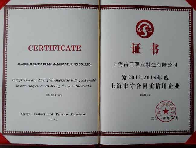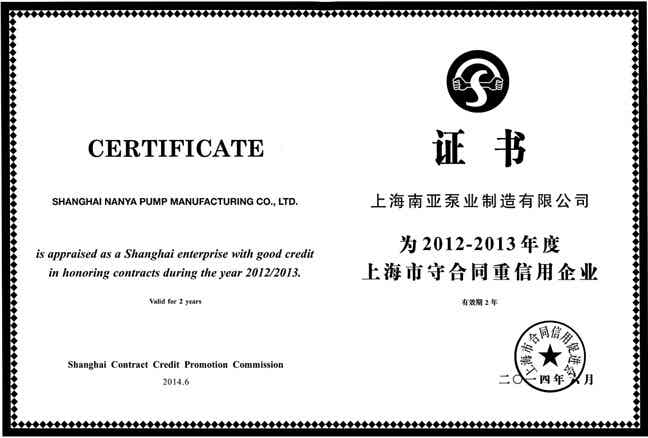 日前,从上海市工商行政管理局获悉,南亚泵业再次被上海市人民政府命名为“重合同守信用企业”,获“AAA级合同认定书”。