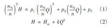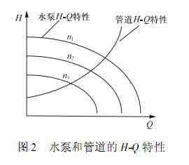 有文献则以离心泵为对象,建立了不同转速下水泵的H-Q曲线,如式(1)所示;同时,建立了管道阻力特性的H-Q曲线,如式(2)所示。