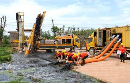 据了解,目前市排水公司共有17台大型移动泵站,分别为西南一号移动泵车、汉能移动泵车、博格移动泵车、亚太(西南二号)液压式移动泵车、“龙吸水”1500排水抢险车各1台,由市排水公司自主研发的车载式移动泵站8台,“迪沃”移动泵车4台,移动抽排能力从每小时360立方米到3200立方米不等。“一旦发生淹积水,我们将根据淹积水情况派出不同的移动泵站。比如说,一般市政道路淹积水主要安排车载式移动泵站前往抽排,发生较大面积淹积水,就可派‘迪沃’移动泵车进行抽排。而立交桥下层发生大面积淹水时,就可出动西南一号移动泵车、亚太(西南二号)液压式移动泵车、‘龙吸水’排水抢险车。”任健说。
