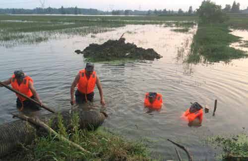 一同清理的群众见此情景说道,“还是铁军厉害,我们的口粮有着落了!”他们来不及休息,快马加鞭分赴改道河曾台段、兰草河叶集段清理水草。清理完水草后,队员们简单充饥,按照三人一组分赴五行村、潭垸村等6个村为内涝重灾村运送、安装水泵。据悉,民兵应急分队共清理主要河道300余米,运送安装水泵20余台。