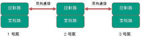 每台变频器内置主板控制器,且均具有独立的控制运行功能,泵与泵之间通过CAN总线互相联动运行。当一台泵控制器故障时其它泵可正常运行给用户供水。
