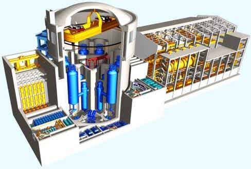 图为:60万千瓦高温气冷堆核电站厂房立体剖面图