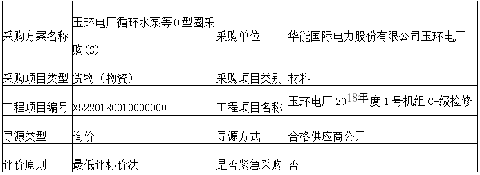 核心提示:玉环电厂循环水泵等O型圈采购(S)询价公告