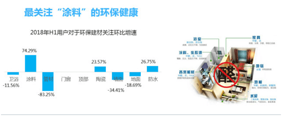 据日前发布的百度《2018水漆行业趋势报告》数据显示,近9成搜索用户对环保家装表现出浓厚兴趣,其中对涂料的环保健康关注率最高,在2018年上半年的环比增速接近75%,远超其他几大版块。