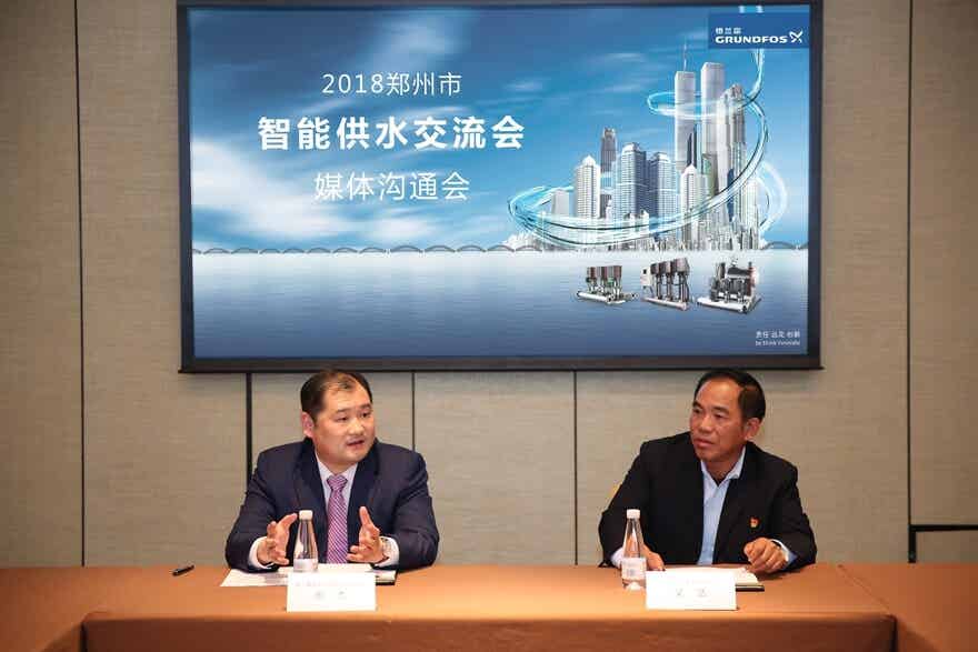 新郑市永泽自来水有限公司总经理李杰、副总经理荆大军、副总经理黄峰、副总经理梁浩,以及格兰富中国区水务事业部总经理张杰等行业及企业高层出席交付仪式及同期举办的2018智能供水交流会,深度探讨了智慧供水发展方向。