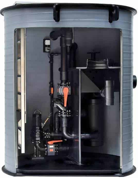 污水流经水泵之前,隔离系统已将污水中的固体物质过滤出来;