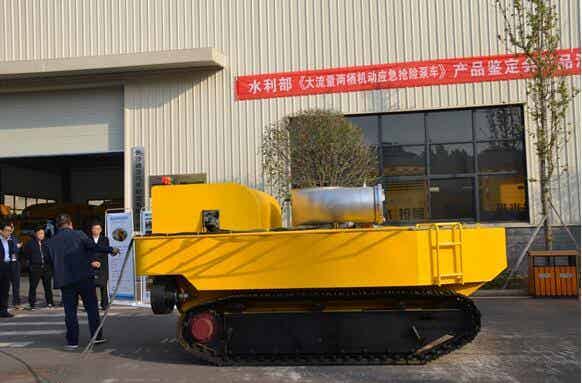 此次鉴定的“QX-5000型大流量两栖机动应急抢险泵车”是自主研发的新产品,该产品具有排水量大、扬程范围宽、效率高、可靠性高、自动化程度高等特点;水陆两栖平台机动灵活,能够在现场快速开展应急作业,环境适应能力强,能适应交通条件差、供电条件不具备、水文气象条件恶劣的工况。