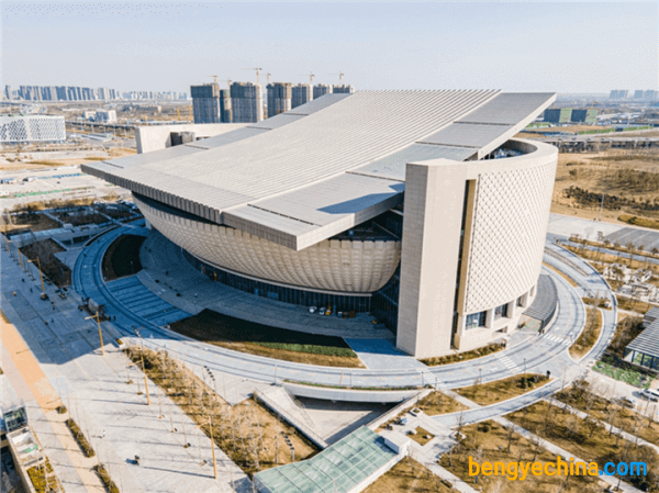 郑州博物馆(新馆),位于郑州市郑州中央文化区,占地112.71亩,总建筑面积14.7万平方米,建筑高度62米,是中国单体面积最大的博物馆。郑州博物馆(新馆)秉承“天地之中、黄帝之冠”的设计理念,以弘扬中原黄帝文化为切入点,将象征黄帝文明的冕冠作为设计原型,同时博物馆主体还有聚宝盆的形象寓意,优美的弧度显得整个建筑饱满圆润,有力彰显了中华大地文明灿烂的光辉历史。郑州博物馆(新馆)分为地下两层,地上主体三层,局部五层,涵盖了学术报告厅、非遗展示区、4D影院、观众互动体验空间等多种功能区。
