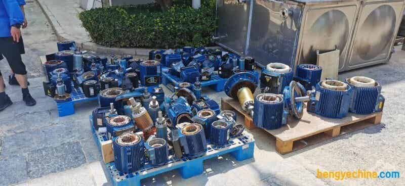 7月27日-8月2日来自全国十几位售后兄弟分成几个小组,由当地的办事处经理带队驰援受灾严重的几个现场。7月27日-7月30日在李昌敏经理带领下,他们一行5人来到了郑州清源基地。现场三个车间,不管是配套安装起来的水泵还是货架上单个的水泵,大概有300台左右都受到了暴雨的浸泡,要对这些水泵进行拆卸电机线圈和更换轴承。四天时间对现场所有进水电机线圈拆卸进行烘干,部分电机轴承进行更换,得到了现场客户对南方服务的高度认可。