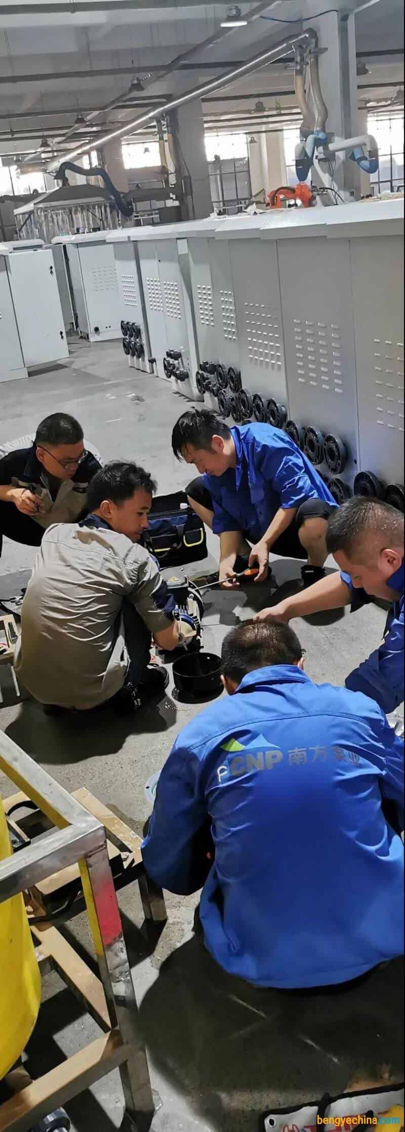 抢修工作的同时还有大批量的水淹产品也需要修复,工厂加班加点保证配件的输出,大家也顾不上白天黑夜、洪水烈阳,工作长达10多个小时,为客户及时处理问题。大家的付出得到了客户的一致好评,对我们南方泵业更是高度的认可。