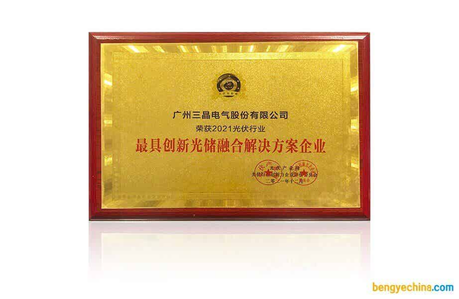 次日,由光伏产业网组织发起的“「PV TOP 50」2021光伏创新榜"(2021光伏行业创新力企业50强榜单发布暨颁奖典礼)在山东济南举行,在本次颁奖典礼上,三晶电气再次发力,一举拿下“2021光伏行业最具创新逆变器企业” 与“2021光伏行业最具创新光储融合解决方案企业”两项大奖。