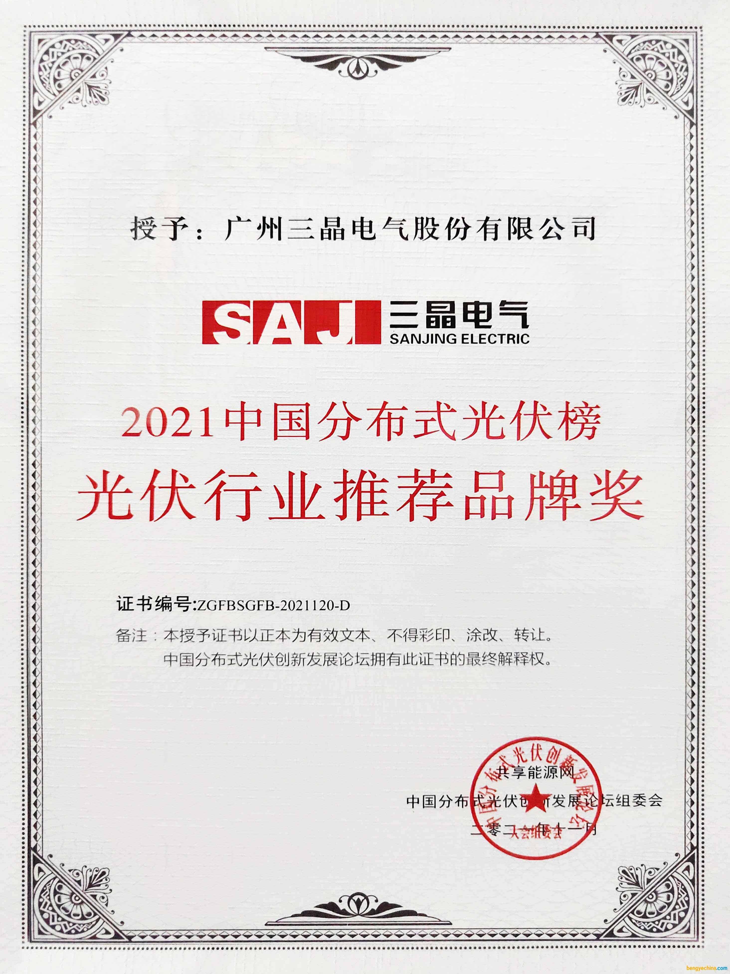 2021年11月30日,由共享能源主办的“第三届中国分布式光伏创新发展论坛暨年度颁奖大会”在山东临沂盛大召开,三晶电气应邀出席,并凭借多年来的技术创新以及在光伏行业的贡献,荣膺“2021中国分布式光伏榜 光伏行业推荐品牌奖”