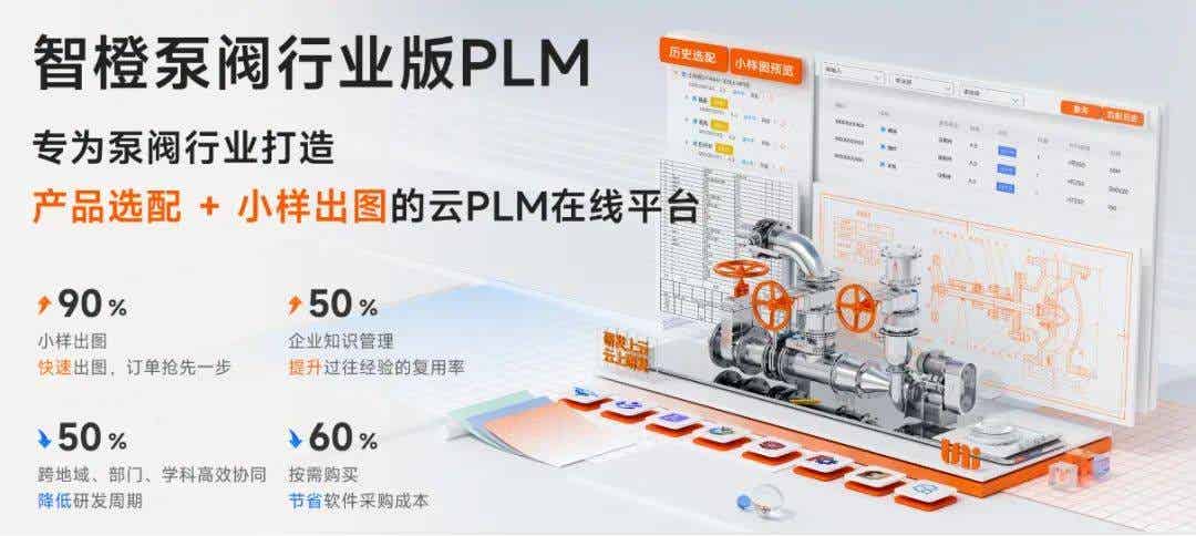 PLM是制造行业进行规范、高效的产品研发的核心软件。智橙PLM相对于传统PDM,能帮助泵阀企业以更低的时间和资金成本,建立起最完善的研发管理体系,并且功能更匹配泵阀行业的使用场景,BOM快速选配/出小样图等功能得到了行业的一致认可。