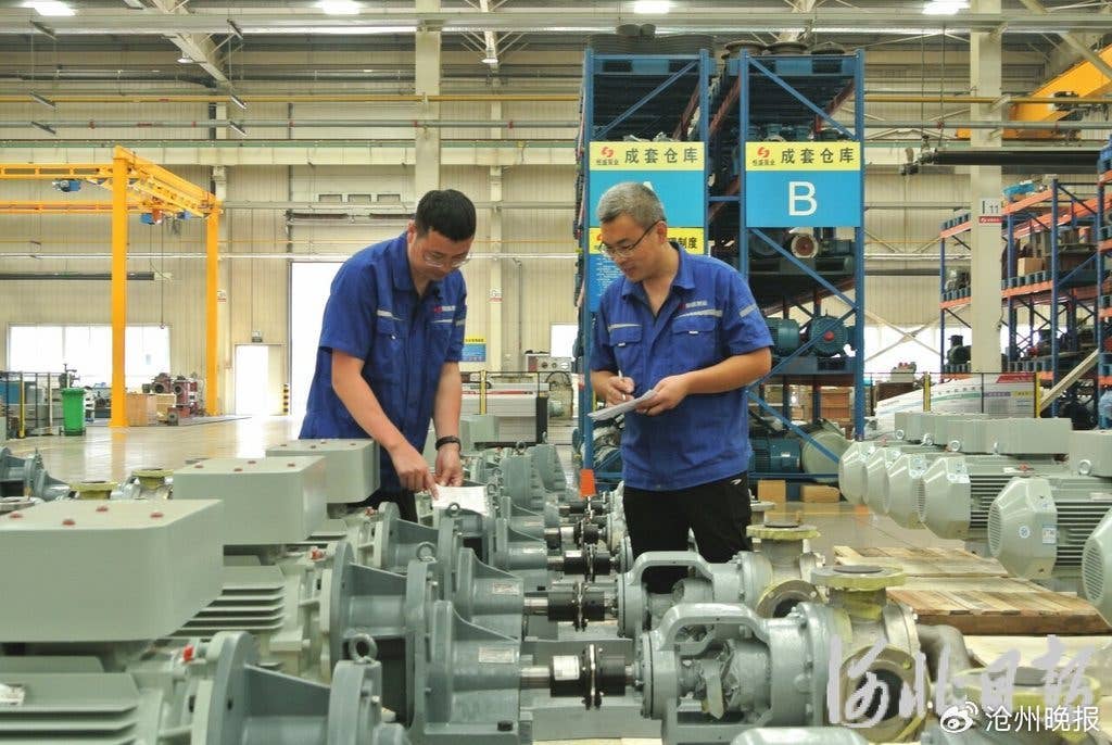 8月11日,在河北恒盛泵业股份有限公司成品区域,工人正在检验成品泵。河北日报记者 王雅楠摄
