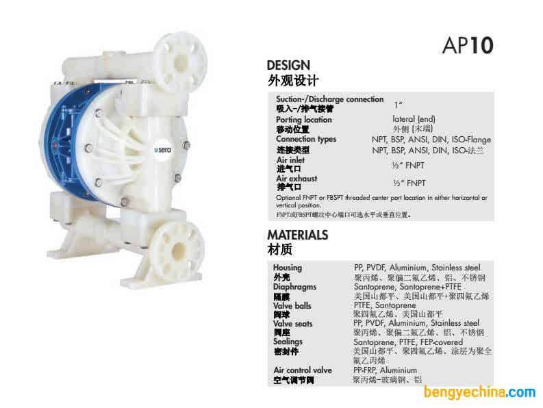 sera气动隔膜泵有自己的功能。内置一个无需润滑可不停机的空气阀,适用于各种应用及环境。与市场上的其他空气阀相比,该气阀内置零件非常少,从而减少了维护时间、成本和停机时间。sera气动隔膜泵质保期为五年。