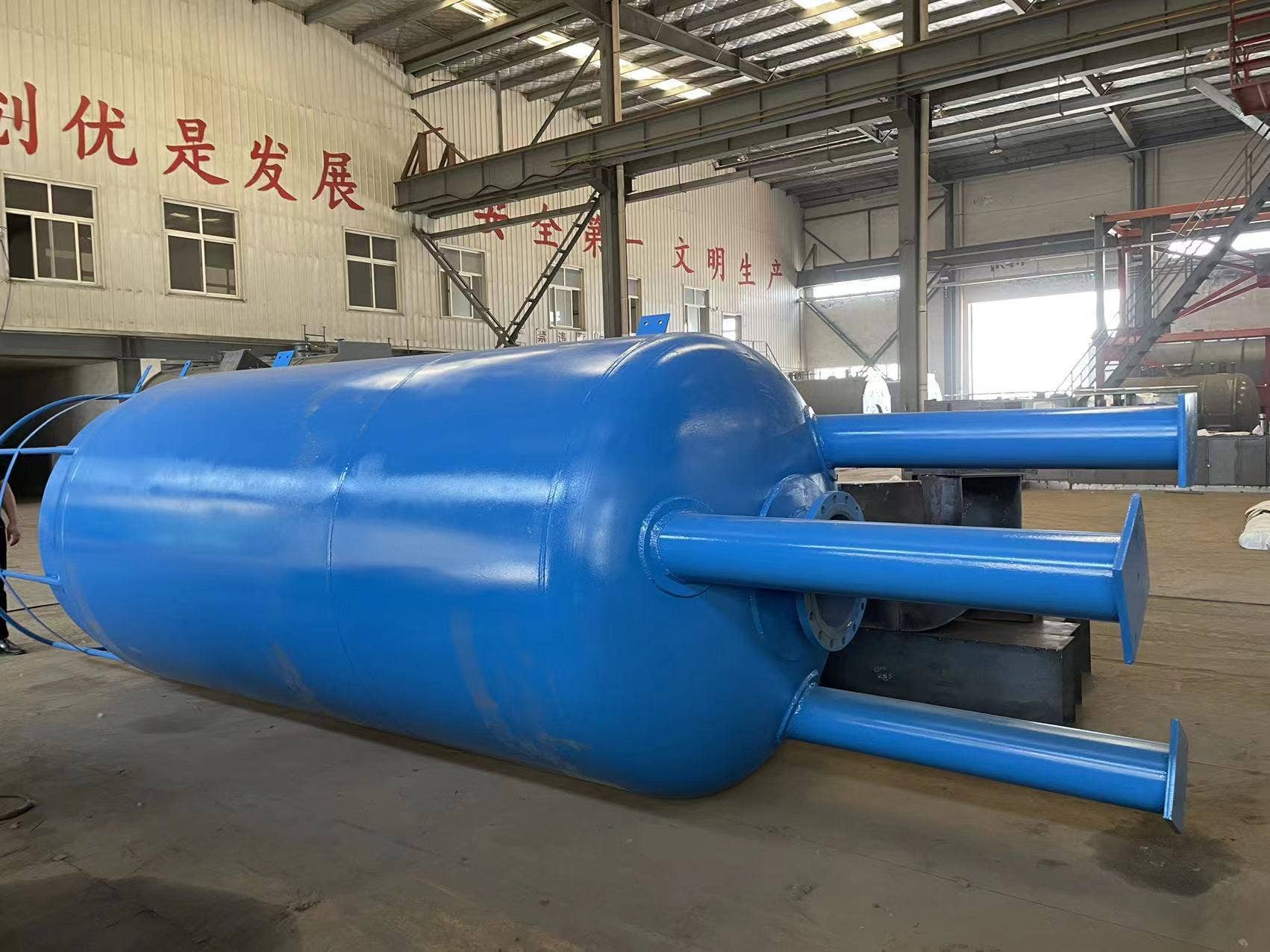水锤消除罐主要用于用于长距离输水管道,包括饮用水厂、污水废水处理厂、海水淡化厂、发电厂、原油管道等应用领域。随着全球水资源的日渐短缺,水利水电等工程建设、维护和运营成本的提高,复杂挑战下,可持续运营的需求逐步旺盛,水锤消除罐的作用日渐明显,它不仅可以保护设施的管道、泵站、消防栓、阀门和其他相关设备免遭水锤事故的破坏,还可以确保设施设备长久有效的运行,免除频繁维护的高昂成本。水锤消除罐的安装需要严格按照施工图纸进行,安装完成之后,需要根据现